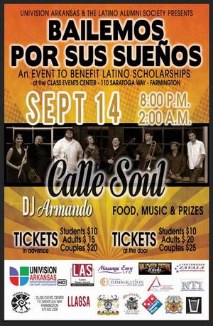 El evento más reciente que está promocionando Univision Arkansas y The Latino Alumni Society es el de "Bailemos Por Sus Sueños" un evento a beneficio de la becas para estudiantes Latinos. Se presentarán como grupo principal la banda Calle Soul y el DJ Armando.